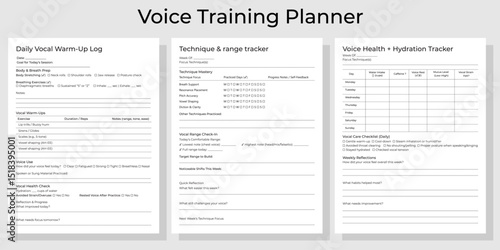 vocal, training, planner, logbook, journal, bundle, set, voice, singing, exercise, health, technique, practice, tracker, progress, articulation, projection, resonance, breathing, support, control, range, stamina, care, hygiene, hydratation, performance, speaking, public, communication, skill, improvement, development, growth, chart, template, printable, digital, instant, download, coach, student, daily, weekly, routine, note, illustration