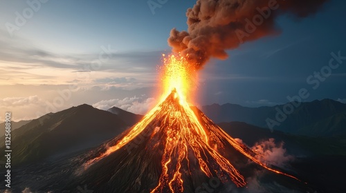 Volcanic eruption spewing ash and lava into the sky capturing the raw power and beauty of nature's fury