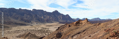 Volcanic mountain panorama in Teide National Park on Canary Island Tenerife, Spain