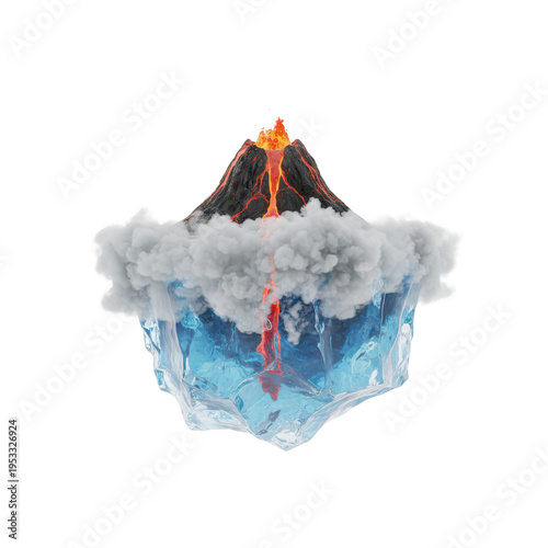volcano, eruption, lava, magma, fire, ice, water, cloud, smoke, earth, geology, nature, natural disaster, power, energy, contrast, element, hot, cold, melting, freezing, underwater, mountain, landscape, environment, danger, force, natural phenomenon, geothermal, ash, explosion, caldera, crater, condensation, geologic, hot spring, steam