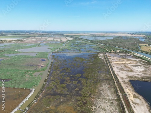 Vue aérienne de la campagne camarguaise avec ses marécages
