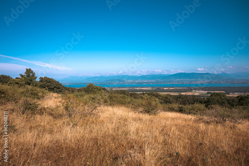 Vue sur le Mont-Blanc et les Alpes et le lac Léman depuis le mont Mourex