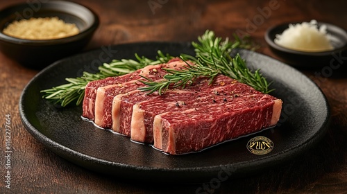 Wagyu ribeye steak presented