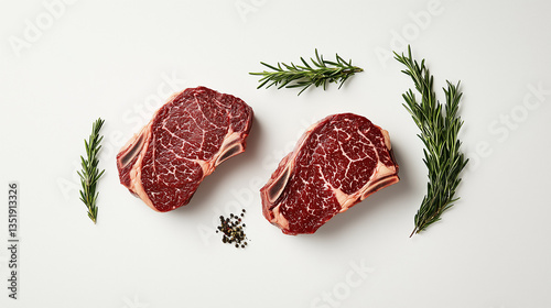 ribeye, steak, meat, white background, space, beef, raw, epicure, fresh, butcher, premium