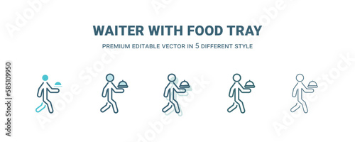 waiter with food tray icon in 5 different style. Outline, filled, two color, thin waiter with food tray icon isolated on white background. Editable vector can be used web and mobile