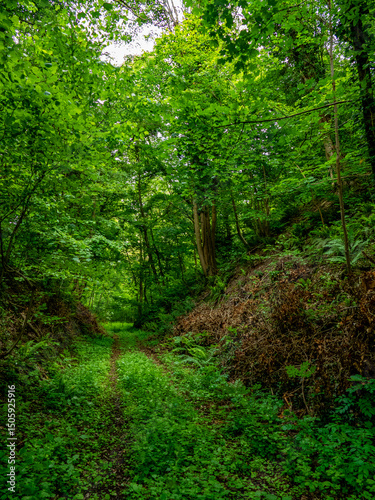 forest, way, tree, forest, countryside, fern, green, oak, beech, nature, coppice, broadleaf tree, plant, remote, green, hardy