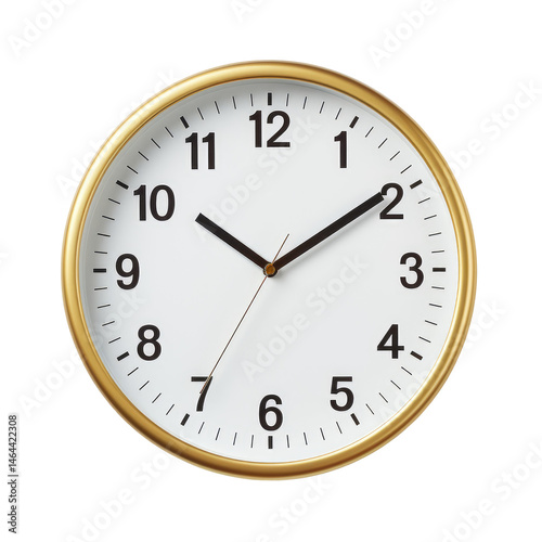 Wall Clock with Bold Golden Frame Isolated on White Background
