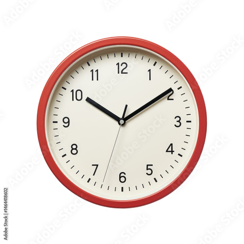 Wall Clock with Bold Red Frame Isolated on White Background
