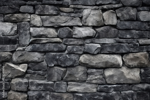 Wall of textured stones on gray background. Old stone wall on stone. Abstract wall in gray tones in natural and rustic style. Realistic 3D illustration. Generative AI