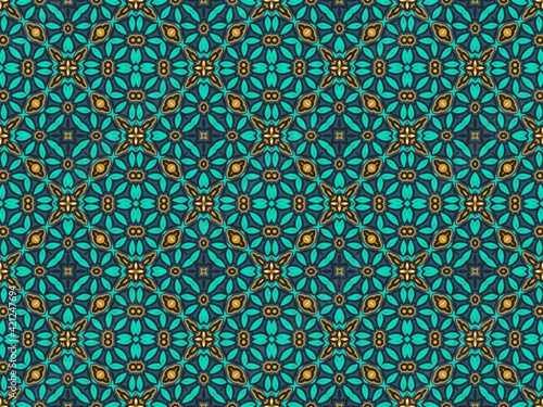Wallpaper Geometric Ornament Abstract Pattern Green, Black, Blue, and Gold Yellow for Print and Background. Geometric Tile Digital Paper.
