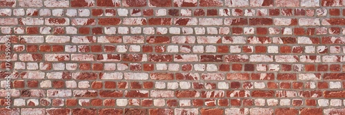Wand aus rot weißen Ziegelsteinen und Fugen aus grauem Mörtel - Panorama Hintergrund