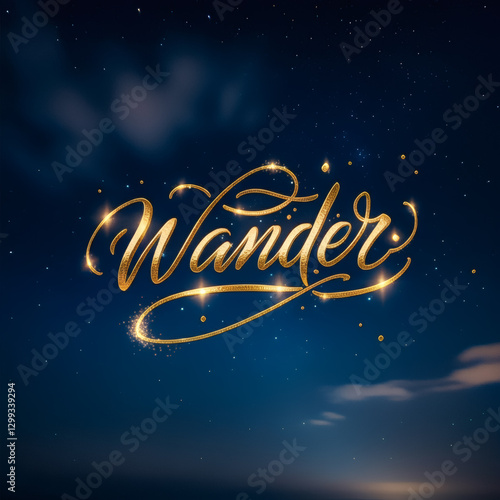 wander, typography, calligraphy, script, elegant, travel, gold, glow, twinkling, sky, night, star, inspiration, artistic, celestial, aglow, fantasy, stylish, adventure, discovery, decorative, lettering, shining, atmospheric, design, exploration, wanderlust, journey, dreamlike, smooth, cursive, illumination