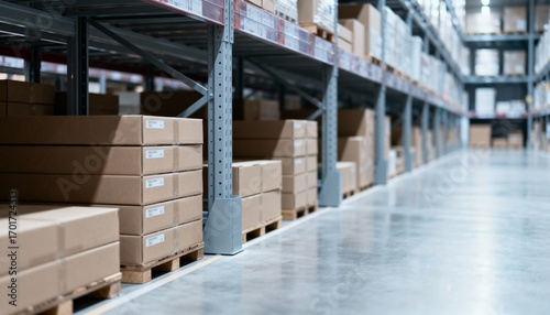 warehouse, storage, distribution, inventory, management, logistic, center, box, pallet, shipping, supply, chain, delivery, stock, good, merchandise, product, retail, wholesale, industrial, commercial, industry, shelving, system, organisation, stack, stacked, cardboard, package, export, import, cargo, freight, transportation, background, aisle, perspective, indoor, space