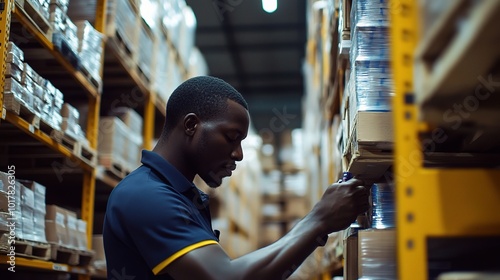 warehouse, men at work, inventory, storage, shelf, manual, labor, industry, logistic, employee, good, organisation, professional, operation, management, supply, chain, box, male, african, business, assistance, task, environment, teamwork, focused, action, indoor, duty, activity, product, control, handling, arrangement, concentration, work, facility, careful, sorting, process, service, equipment, professionalism, role