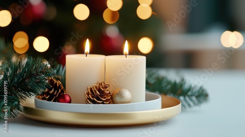 Warm Candlelight with Holiday Decor and Bokeh Lights