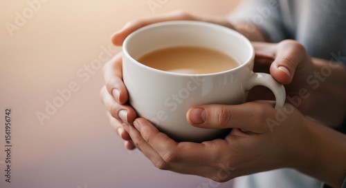 Warm Embrace: Hands Holding a Cup of Tea in Soft Light