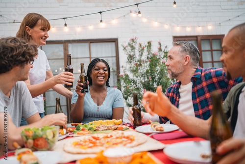 family, warmth, togetherness, gathering, love, laughter, happiness, bonding, connection, comfort, joy, memory, sharing, smile, cheerful, relaxed, affection, caring, celebration, backyard, meal, dining, friendship, cosy, fun, support, positive, together, festive, conversation, human relationships, blithe, emotion, trust, fulfillment, belonging, heartwarming, oneness, closeness, evening, enjoyment, social, tradition, grateful, appreciation