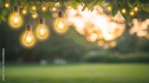 Warm glowing garden lights strung in outdoor space creating a cozy atmosphere