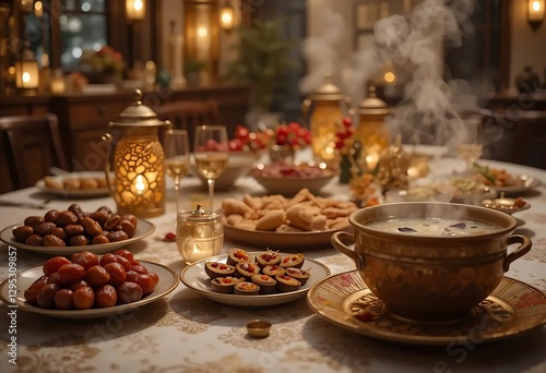 date, pastry, soup, gold, warm, light, table, setting, luxurious, middle, eastern, food, festive, delicious, dinner, rich, texture, aroma, elegant, ambience, homely, gathering, family, culture, tradition, appetising, inviting, culinary, photo, styling, commercial, product, image, interior, design, warmth, cosy, epicure, cookery