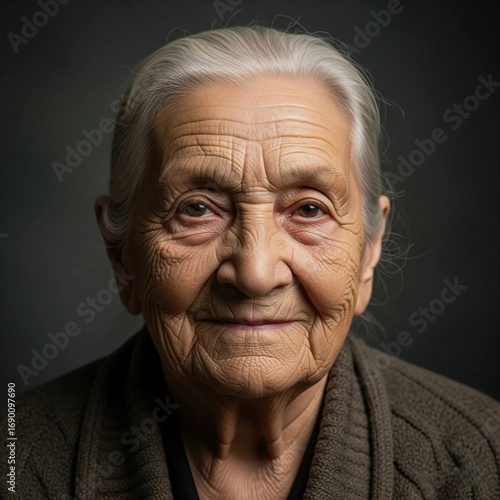 elderly, woman, portrait, smiling, warm, realistic, detailed, aged, wrinkle, skin, texture, authentic, senior, wise, happy, joyful, natural, closeup, human, soft light, detail