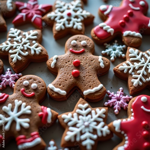 Warm spiced gingerbread cookies, freshly baked and decorated with festive icing, perfect for holiday celebrations, christmas cookies, cookies