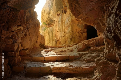 cave, entrance, natural, light, stone, stair, ancient, sunlight, rocky, interior, mysterious, exploration, nature, geologic, formation, underground, cavern, adventure, erosion, wonder, feature, sunlit, shadowy, wilderness, travel, destination, earth, texture, spelunking, hike, structure, historic, hidden, landscape, tranquil, remote, location, geology, sedimentary, rock, science, outdoors, eco, tour tourism, archaic, untouched, rough, terrain, explore