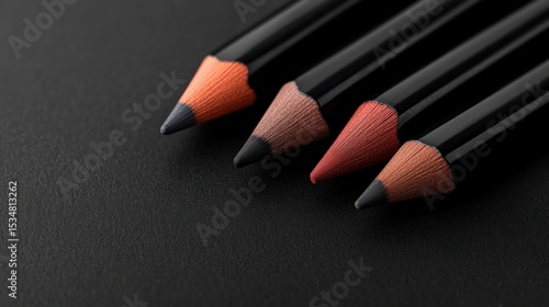 Warm-toned eyeliner pencils arranged on a dark textured surface showing precision