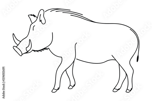 warthog, animal, africa, wildlife, outline, drawing, line art, vignetting, vector, illustration, mammal, pig, tusk, safari, zoo, icon, graphic, design, black-and-white, minimalism, minimalist, simplicity, single line, contour, clip art, editable, nature, wilderness