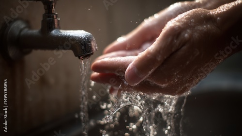 water, hand, washing, clean, hygiene, faucet, tap, fresh, liquid, pure, cleanliness, health, sanitation, wellness, purity, flowing, stream, drop, splashing, wet, skin, soap, finger, rinse, scrubbing, germ, virus, prevention, care, body, human, closeup, detail, texture, photo, image, still, life
