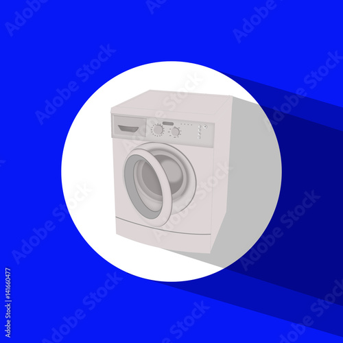Washing machine isolated flat icon on blue background with shadow. Washer