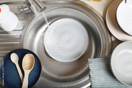 up high, background, ceramic, chore, clean, cleaning, daily, detergent, dirty, dish, crockery, dishwashing, domestic, duty, equipment, faucet, home, house, household, housekeeping, housework, hygiene, kitchen, kitchen utensile, many, object, plate, plate, pouring, routine, sink, spoon, top, utensil, view, laundered, washing, wet, wooden