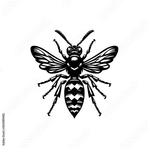 wasp, insect, flying, wing, antennae, leg, body, abdomen, chested, head, eye, stinger, venom, sting, hymenoptera, pest, annoying, dangerous, wildlife, nature, animal, creature, bug, drawing, vignetting, black, and, graphic