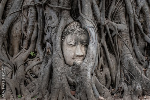 Wat Mahathat, buddha's head amond tree's root. Ayutthaya, Thailand.