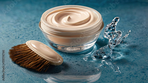 Water action photo of varnish, cream and other products for beauty treatments. minimum elements