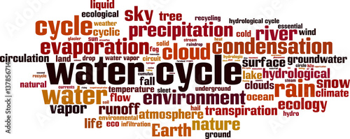 word, cloud, tags, vector, concept, illustration, water, cycle, earth, life, essential, surface, evaporation, vapour, sky, cloud, cold, liquid, condensation, fall, rain, snow, sleet, hail, precipitation, climate, river, ocean, sea, atmosphere, infiltration, runoff, flow, solid, temperature, wind, cyclic, ecology, environment, life cycle, nature, underground