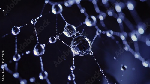 water, droplet, spider, web, dew, morning, light, soft, nature, macro, photo, glistening, iridescent, round, sphere, drop, bead, pattern, intricate, delicate, thread, silk, shimmering, sparkle, background, dark, black, blue, purple, abstract, artwork, art, texture, design, natural, environment, beauty