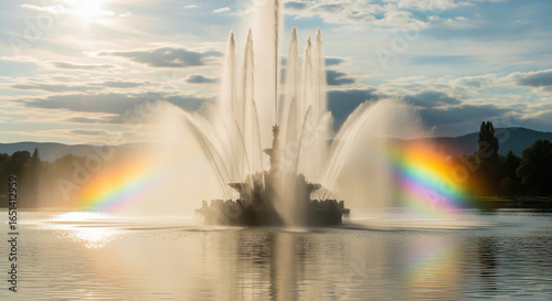 fountain, water, sunlight, sparkle, burst, refreshing, energy, park, nature, flow, droplet, spray, dynamic, high-coloured, clear, clean, outdoors, water feature, motion, light, gush, stream, splash, rising, sky, daylight, summer, vibrant, lively, invigorating, animated, effervescent, liquid, wet, showering