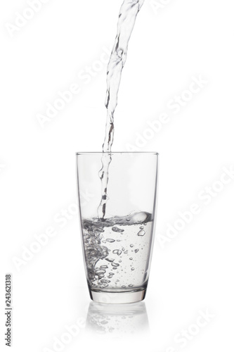 Water falling in glass on isolate background.