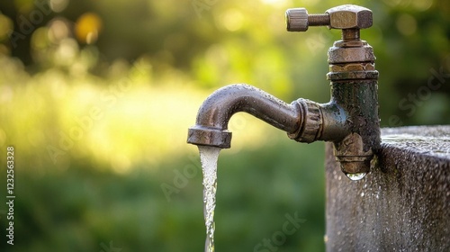faucet, water, outdoors, nature, dripped, flow, plumbing, garden, metal, tap, spout, liquid, landscape, ecology, freshness, environment, hydratation, source, morning, sunlight, structure, clear, drinking, element, gardening, maintenance, household, spring, pipe, refreshment, serene, rural, closeup, splash, rustic, setting, utility, resource, connection, natural, efficiency, health, shine, calm