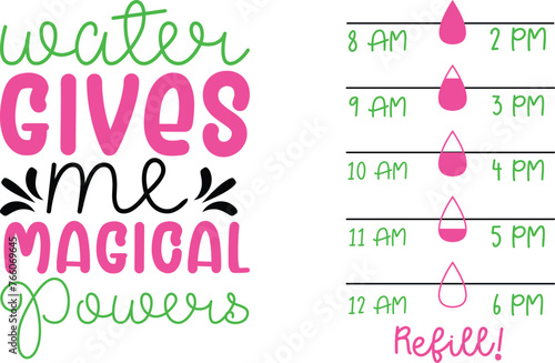 Water Gives Me Magical Power, Water Bottle Hand Drawn Quote