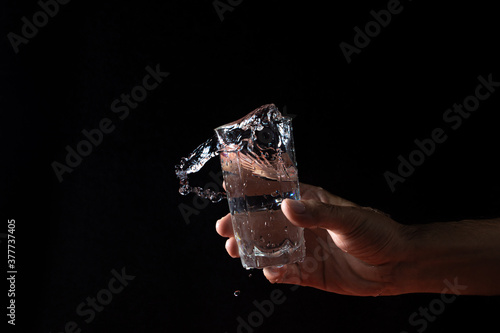 water, clean, drinking, natural, black, background, closeup, nature, macro, idea, creative, studio, glasses, pour out, hand, spray, isolated, white