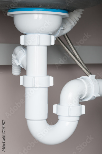 pipe, water, sink, plumbing, kitchen, bathroom, plastic, drain, white, home, trap, background, faucet, closeup, pvc, repair, plumber, under, tap, connection, house, construction, sewer, tube, equipment, siphon, pipeline