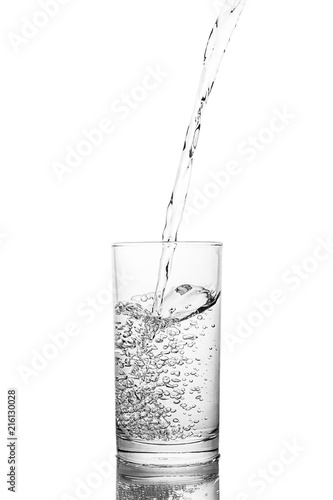 Water poured in glass transparent white background