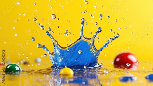 water, splash, motion, droplet, blue, colours, background, yellow, bubble, liquid, surface, art, abstract, creative, vibrant, dynamic, freshness, nature, texture