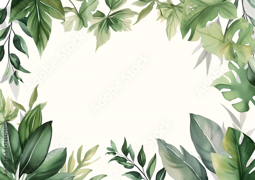 watercolor botanical flowers frame background with free space for invite or wedding card