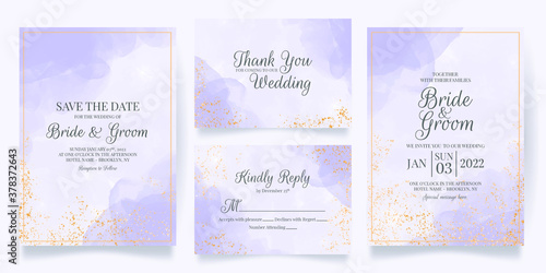 watercolor creamy wedding invitation card template set with golden floral decoration