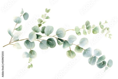 Watercolor eucalyptus and sage green leaves frame, white background, soft colors, neutral tones,