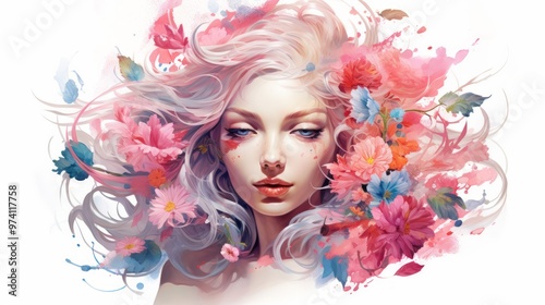 watercolor, woman, dress, girl, hair, texture, design, people, summer, travel, isolated, fashion, nature, vintage, art, spring, beauty, retro, card, colours, celebration, splash, vignetting, model, fabric, pink, person, drawing, young, print, ink, beautiful, natural, decoration, romantic, feminine, evening, splatter, elegant, female, freehand, lady, look, painted, artificial intelligence, ai