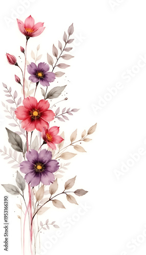 floral, flower, watercolor, pink, purple, leaf, botanical, nature, blossom, bloom, garden, spring, summer, delicate, soft, pastel, artistic, creative, design, element, background, isolated, white, pattern, texture, illustration, decorative, beauty, fresh, vibrant, elegant, romantic, gentle, organic, growth, natural, bouquet, arrangement, flora, plant