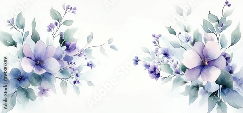 Watercolor Floral Arrangement Soft Purple Green Hues Bouquet Floral Frame Wreath Wedding Stationery Background Art Collection